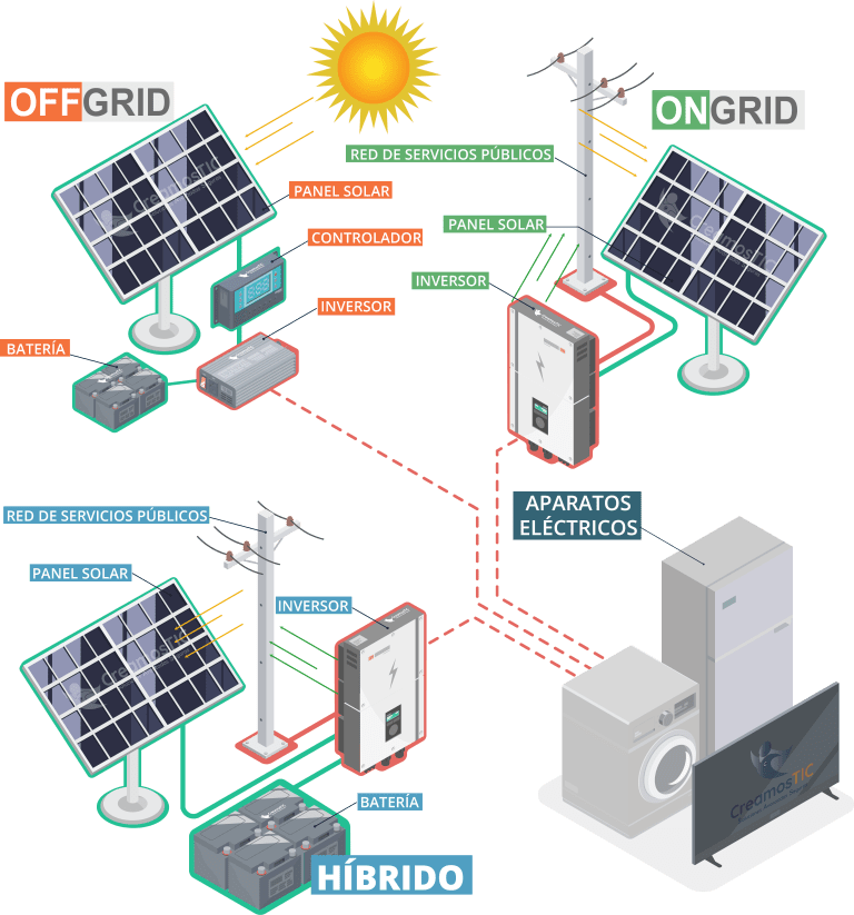 Los paneles solares aprovechan la radiación solar para generar corriente eléctrica. Es por ello, que esta corriente debe ser regulada y controlada para ser usada durante el día o almacenada en baterías para su uso durante la noche. El Kit Solar que ofrecemos genera corriente directa, por lo que es necesario un inversor para convertirla en corriente alterna, la cual es la que utilizan los bombillos. tv, nevera, motobomba, y demás electrodomésticos de su hogar.